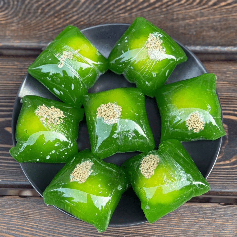 Bột năng, đỗ xanh, đường, lá dứa, dừa khô